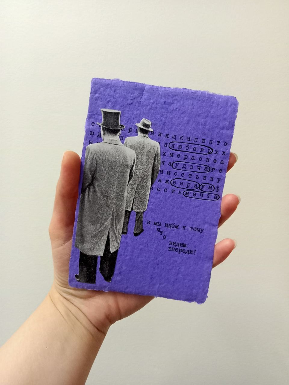 Речь, конечно же, о мастер-классе по открыткам на самодельной бумаге. Вновь напечатаем важные фразы, и превратим это послание в открытку, закладку или плакат.